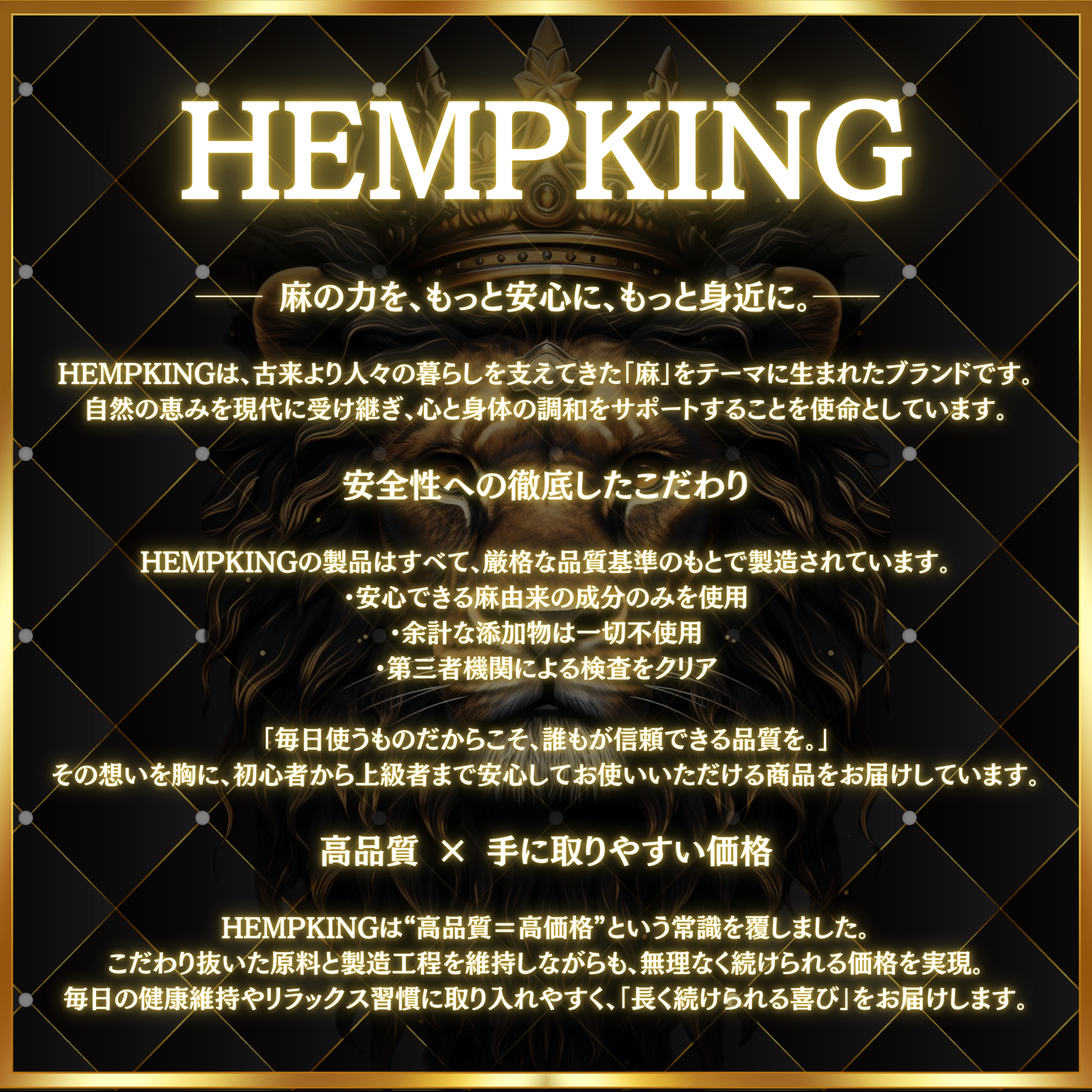 - オーガニック大麻草の成熟した種子、茎を使用しており、THC、香料は含まれておりません。